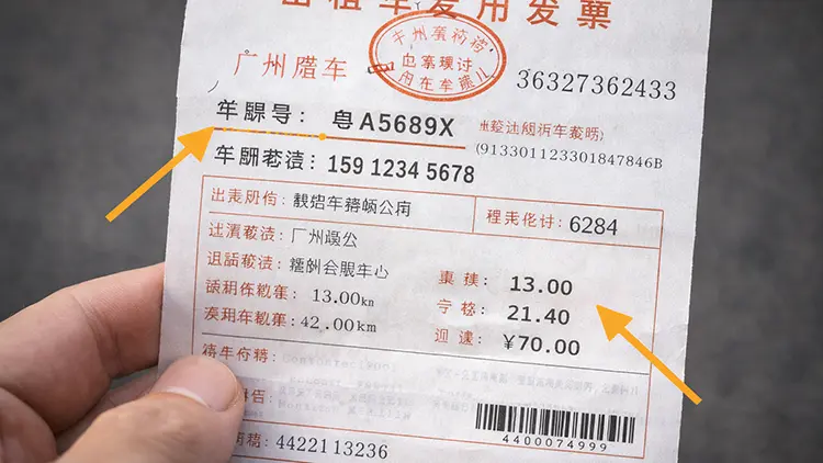- Tip #4: Request a “Fapiao”. Always ask for the machine-printed receipt (Fapiao) at the end of the ride. It contains the car’s license plate number and the taxi company’s phone number. Scammers hate giving receipts.